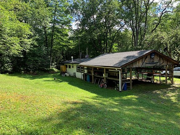 Nice camp or full time residence located on 6.78 mostly wooded acres, located off the beaten path is this 1 story 570 square ft. block structure. Attached 24 x 24 carport that can be used for parking your vehicle or for a place for outdoor entertaining. Combined Kitchen and living area, 1 decent size bedroom with bunk beds included, has a laundry with full size washer and dryer, bathroom consist of a vanity, toilet and shower. An oil fired hot air furnace keeps you warm in the winter. Enjoy the outside firepit with seating, numerous outbuildings for all your storage needs. Most of the contents/ furnishings are included in the sale , nice quiet location located about 15 minutes out of Port Allegany, home is being sold as is.