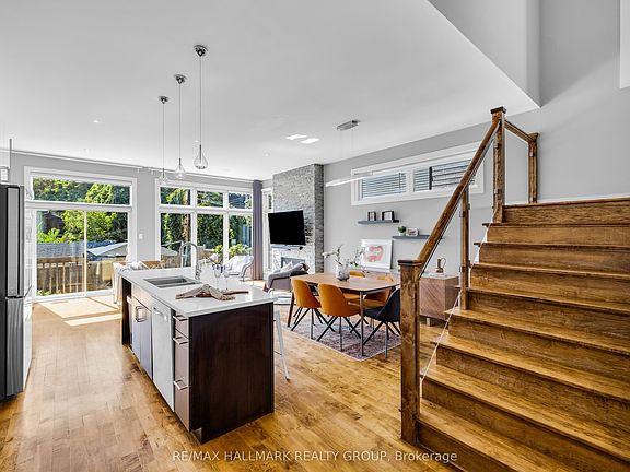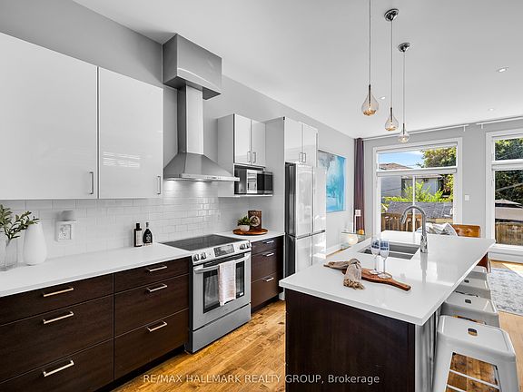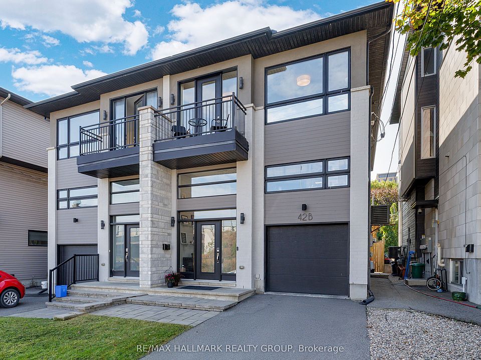 Nestled between trendy Little Italy, Civic Hospital, and vibrant Hintonburg, this stunning modern executive semi-detached home offers the perfect blend of luxury, space, and income potential, ideal for professional couples, downsizers, or families seeking stylish urban living. Enjoy being greeted with spectacular 14' ceilings in the entrance foyer, followed by soaring 10' ceilings throughout the remainder of the open-concept main floor featuring floor-to-ceiling windows, hardwood floors, and a show-stopping stone fireplace wall. At the heart of the home is a sleek, modern kitchen with a large island, quartz countertops, and high-end finishes, perfect for cooking and entertaining. Upstairs, enjoy 9' ceilings, a spacious primary suite with a walk-in closet and spa-like ensuite, two additional bedrooms (one with a private balcony), and convenient second-floor laundry. The fully finished lower level includes a stylish, income-generating one-bedroom apartment (currently rented for $1794/mth inclusive)with radiant heated floors, a private entrance, HRV system, stackable washer & dryer - ideal for rental income, extended family, or a home office suite. Outside, the south-facing, fully fenced backyard is a peaceful retreat with a large patio, low maintenance lawn, and raised garden beds. Smart home features include app-controlled blinds, lights, thermostat, garage door, video doorbell, and full security system, plus hardwired RJ45 internet points in all bedrooms and the living room. Additional perks include inside access from the garage and a spacious mezzanine above it, great for extra storage. Steps to Ottawa's best shops, cafés, bike paths, transit, and parks, and minutes to Dows Lake, the Rideau Canal, Chinatown, the Glebe, and year-round festivals and outdoor recreation.