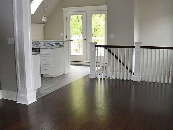 This unit was completely built new 2 years ago....everything is new and no expense was spared in the renovation. It is located on the 3rd floor of a completely renovated 3-family and truly feels like a home. The kitchen has custom-built white shaker cabinets with beautiful granite and glass tile backsplash and S/S appliances. There is a built-in wine rack, pantry, and a raised island for eating. The kitchen opens up to a large deck that gets full sun (nothing above it). The hardwood floors are stained a dark brown color. There is a second small bedroom with built-in bookshelves which is perfect for an office / guest bedroom with a pull-out couch. The bathroom is modern and white. We had a high-end insulation installed which significantly contributes to exceptionally low heating and cooling bills! The unit has a new gas heat system and central air. A parking spot is included in the driveway. There is laundry hook ups in the basement.