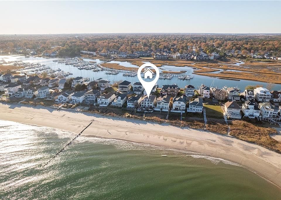 Exquisite Contemporary Bayfront Estate with unobstructed Chesapeake Bay views and rare beach access. Elevated ~20 above sea level in a gated golf cart community with private entry. This custom masterpiece features an oversized deck great for dolphin watching, an outdoor kitchen, and a main kitchen with custom cabinetry, double dishwashers, and updated countertops. Enjoy a luxe guest suite with wet bar, dishwasher, full bath, and private deck. Indulge in the luxurious spa-inspired bath, and take in panoramic vistas from four balconies and a 40x12 deck spanning three levels. Garage includes an electric car charger.Owner is a licensed real estate sales associate in the state of Florida