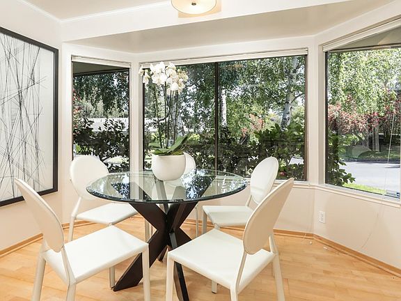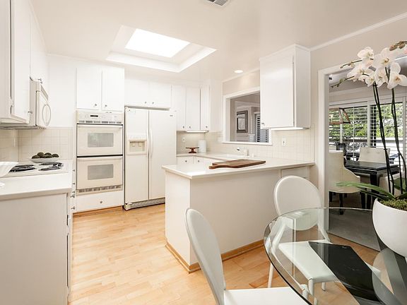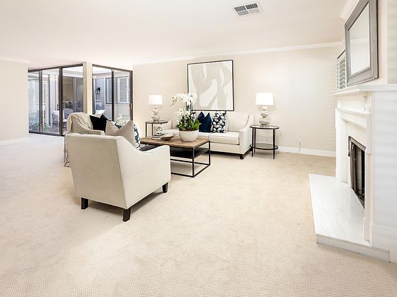 Located in the gated North Los Altos community of Creekside Oaks, this peaceful single level retreat includes a formal living room w/gas log marble surround fireplace, formal dining, oversize den with closet and wet bar. Sunny eat-in kitchen with refinished hardwood floors, skylight, white Corian countertops, electric cooktop, double ovens and spacious bay window seating. Master w/ new carpet and white tiled bath with walk-in tub & separate shower. Fresh paint, plantation shutters, air conditioning, crown molding, new light fixtures, new vinyl tile in baths. Attractive brick patio, with accent lighting and fresh landscaping. Interior atrium with retractable cover fills home w/natural light. Attached 2 car garage, with auto showroom style floor & extra loft storage. Idyllic neighborhood of majestic heritage oak trees, trickling creek, 2 community pools, spa, serene fountains, bocce ball court, & a charming historic barn. Near The Village. Superb LA schools.