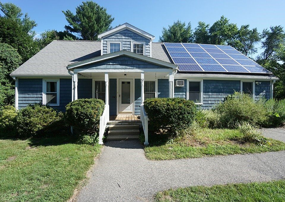 Seller states, Location convenient to everything! Cozy 11-room Cape features 4 bedrooms and 3 full bathrooms as well as recent accessible addition, accessed inside or outside by side door via ramp. The Main floor has living room, den, and kitchen with newer appliances, dining area, office, 1 bedroom and 2 full baths (one of which is accessible and features a washer and dryer). Second floor features 3 bedrooms, a large landing/library with 2 built-in bookcases, office and a full bath with parking for 6 vehicles. Seller notes that the owned Solar Panels reduce electric bill to only $100/month while running 5 built-in air conditioners and also generates a quarterly dividend (ranging from $300-$700). Conveniently located close to the Town Hall, Town Common, bus line to Boston, Burlington Mall, Wegmans, Shaw's, Market Basket, world renowned Lahey Clinic, fine dining including: Feng Shui, Tony C's, Legal Seafood, Tavern in the Square, and all major arteries.