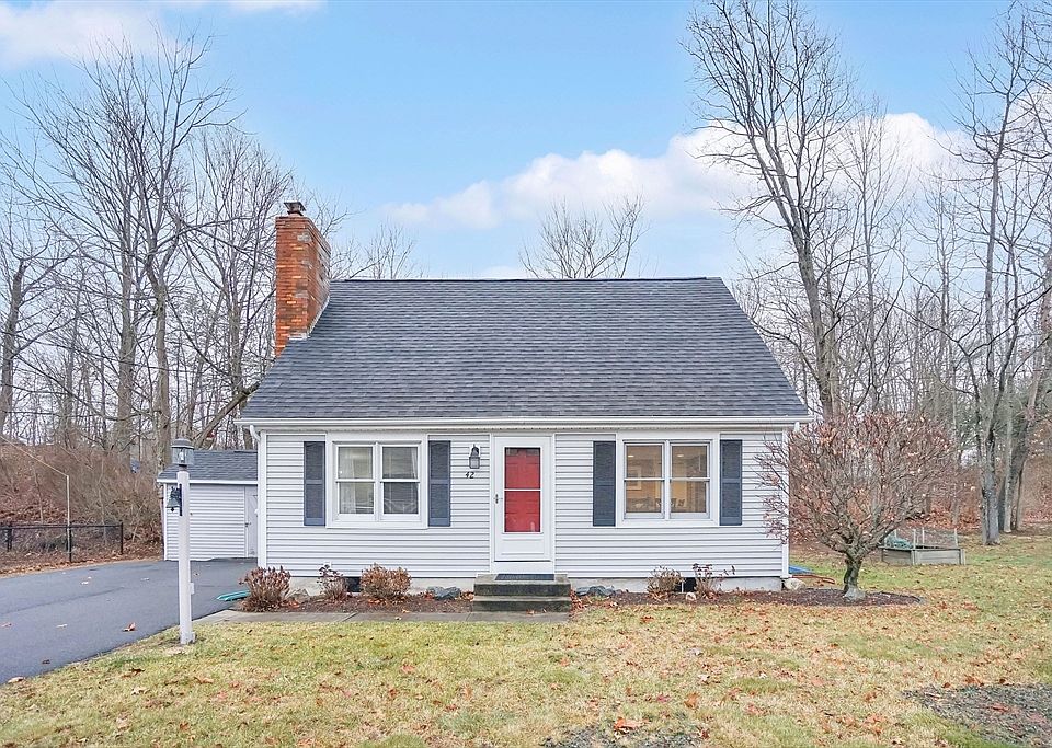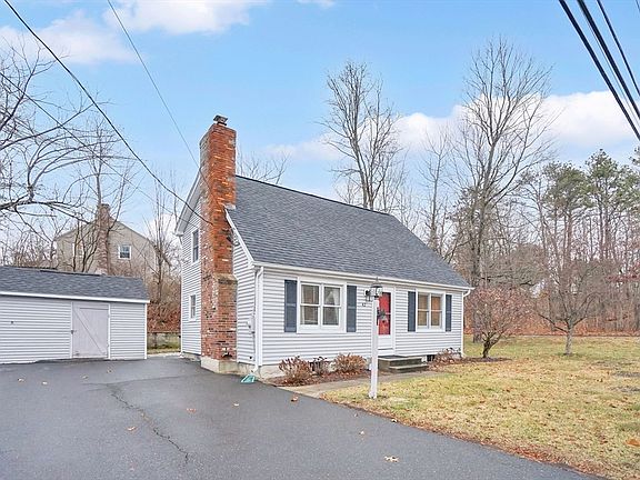 New Year, New Home! Welcome to this inviting single-family Cape offering the option for first-floor living with a generous sized bedroom and laundry room inclusive of a half bath for added convenience. Currently the room is being utilized as dining room but could also be converted into an office space. The options are endless! The bright eat-in kitchen boasts ample counter space, perfect for home cooks and casual gatherings. Evenings are made cozy by the fireplace in your living room. Upstairs features not one but two spacious bedrooms and a refreshed full bath with fresh paint, new medicine cabinet, and updated lighting. The basement offers excellent storage with built-in shelving. Outside, enjoy a deck for entertaining, a large storage shed, garden space, and a generous side yard—ideal for outdoor enjoyment.