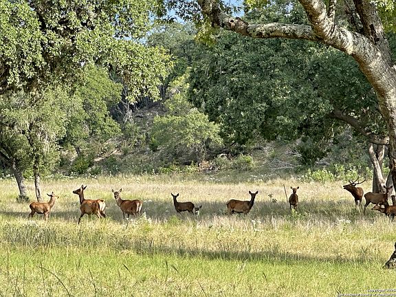 Wait, what...Elk in Texas on a waterfront piece of property? Yep! Welcome to Elk Mountain Ranch, a gated acreage community located just a few miles west of Boerne Hard. Hard to find 6.7 acres with approximately 130 feet of private water frontage in Elk Mountain Ranch, a high fenced development, offering ag. exempt acreage lots with views and amazing wildlife. A healthy herd of elk graze throughout the ranch, as well as white tail deer, some cattle, turkey and other native species. Lot 42 is extremely unique as it is just one of a few waterfront lots within the ranch that have direct access to the Madrona Creek, a year round body of water ideal for fishing, kayaking and paddle boarding. Lot 42 offers both incredible long range views, as well as a large peaceful meadow, mature trees and of course direct access to the water! You will see elk roaming and grazing as well as hear them bugling throughout the ranch. Light restrictions are in place with no mobile or manufactured homes being allowed. Tiny homes and barndominiums are allowed, as are various animals. Power is at the street. There is also a small community common area/park along the creek that offers two separate pavilions and BBQ grills, but lot 42 has it's own waterfront! A water well and septic system will be necessary once you decide to build. If you are ever looking for an amazing lot to build your dream home, vacation home or possibly short term rentals, you need to take a look at lot 42 in Elk Mountain Ranch as the elk, views and private creek frontage will simply blow you away! Don't wait on this one. It's the only lot available with private creek frontage and priced lower than several smaller lots with no water front!