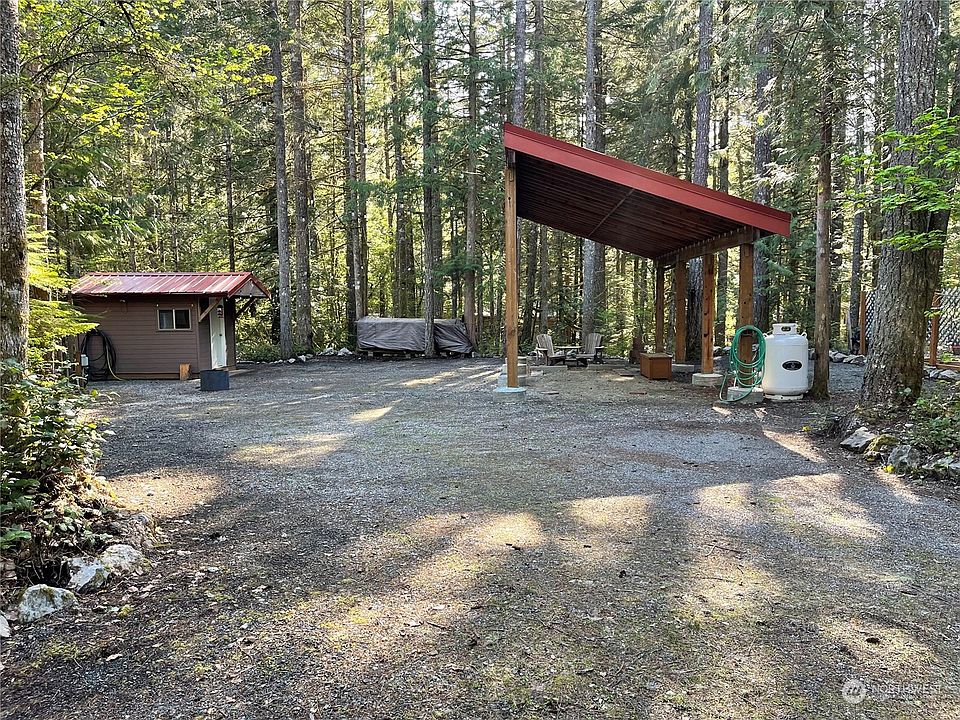 Welcome to Div. 4 Lot 42 at The Glen at Maple Falls. This large corner lot is ready for you to bring your RV! Extremely well built, engineered and county approved free standing structure is ready to park your trailer underneath it to keep it protected from the elements. Roof covers over 490 sq. ft. The water, septic, electrical, and cable are right there to hook up to. Also has air plumbed over to blow out water lines for winter. Air compressor in shed and stays with sale. Shed on property to keep your things dry. Internet and cable included in dues! The Glen has 2 pools, hot tub, sauna, 2 clubhouses, restrooms w/showers, tennis courts, library, laundry facilities, river access, trails, 24/7 security w/gated entrance, and so much more!