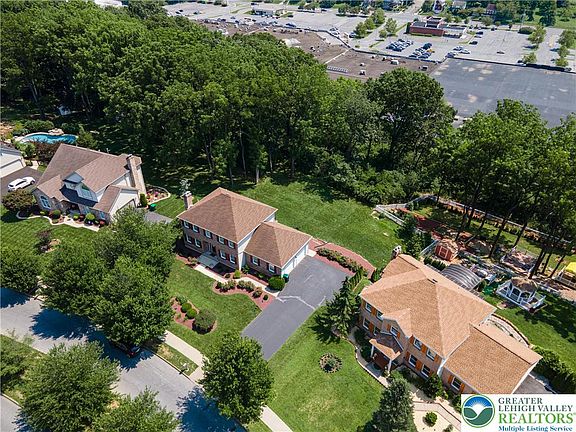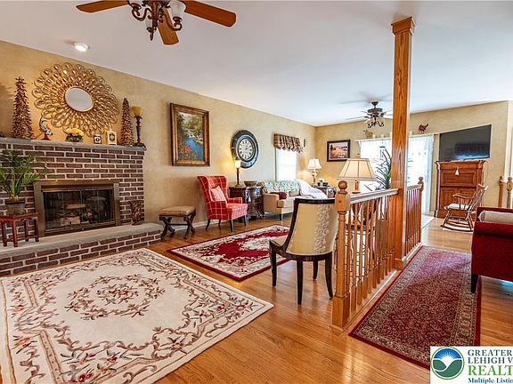 Welcome to this stunning 3-bed, 3.5-bath brickfront colonial nestled in prestigious Hillcrest Acres. North-facing home with sunny southern exposure in the rear *NEWER ROOF & A/C UNIT!* French drs open to a den/study/office w/wall-to-wall shelves & ceiling fan. The bright FR feat 2 ceiling fans, cozy brick fireplace w/mantel & sliding dr access to the walkout deck. The kitchen & eating area feat tile flrs, charming bumpout window, granite counters, recessed lts, ceiling fan, matching bisque apps & ctr island w/bfast seating. A 1/2 bath & laundry rm complete the 1st flr. Upstairs, HW flrs continue throughout. The spacious master ste boasts a ceiling fan & his/hers walk-in closets. The luxurious en-ste bath inc tiled flrs & walls, palladium window above the soaking tub, a tiled walk-in shower w/glass dr & dual sinks. 2 add'l nicely sized bedrms w/ceiling fans share a full bath w/tiled tub/shower combo. The fully finished walkout basement expands your living space w/LG rec area feat wall-to-wall carpet, gas fireplace, recessed lts, charming bumpout window w/bench seating, built-in wall bench, full wet bar & full bath w/walk-in shower. Step into the enclosed patio w/tile floors, stacked stone accents & ceiling fans—an ideal space for year-round enjoyment. The manicured backyard backs to mature trees for added privacy. A 2-car garage w/paved driveway complete this exceptional home. Close to major hwys US-22 & PA-33 for easy commute, Green Pond C.C, shops, restaurants & more!