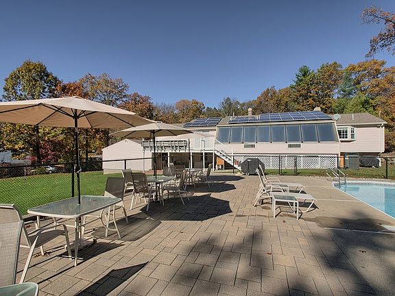 Oversized 10 room open concept Hicks built split entry in desirable Chelmsford neighborhood. Beautiful solarium overlooking the in ground pool, cabana, and manicured lawn with sprinkler system. Solar panels for low cost electricity. The four bedrooms include a master bedroom suite as well as a guest bedroom suite. A brand new Honey Maple kitchen is being installed the first week of November with all stainless appliances included. The lower level includes a family room with gas fireplace, a kitchen (no appliances) and a game room. This is a great layout for teens or extended family. There is a 2 car garage and plenty of storage. This property has been meticulously maintained and updated. Great commuter location. New owner can be in for the holidays!