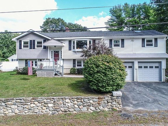 Expansive split-level 3 bedroom 2 bath home, membership to Lake Samoset. Lower level bonus room with closet in the lower level that can be used as a gym/office. Two car attached garage, RV parking, and shed with partially fenced yard. Custom kitchen, granite counter top, large island, black stainless steel appliances, open concept to dining/living room with slider door to large back porch. The living room has peek-a-boo water views. The master bedroom has cathedral ceilings with exposed beams, skylights, his/her closets, private master bathroom with his/her sinks. Finished lower level with raised panel wainscoting, wood fireplace with blower, new carpet. This home also has manicured mature gardens, is in a quiet neighborhood, and has a large custom stone wall in the front. Town water/sewer. Oil/baseboard. Water heater/boiler 5 years old. Easy commuter access to Route 190/Route 2/ Route 12 and 13. Lake membership to Lake Samoset, beach, boat launch, no motors.
