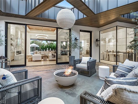 Timeless and tasteful, this stunning 10,180 sqft estate sits on a 1/2 acre behind the guarded gates of the single-story restricted Indigo neighborhood in The Ridges. Step inside this magnificent property which has been completely redesigned w/ finest quality finishes and experience luxury living at its finest. The open concept floor plan features a Calcutta fireplace wall. The left wing features the primary suite, three additional en-suite guest rooms & an office. The lower level of the home has been completely reimagined from its original form, including an additional 2,000 sqft of living space. Complete w/ a wine cellar, gym, sauna, den, formal media room & 2 additional guest rooms, this home truly has it all. The immaculately landscaped backyard is a paradise featuring a fifty five foot long pool w/ a center island for lounging, water features, a fire pit, a full outdoor kitchen & sport court. No detail spared, 42 crested cloud sets a new bar in defining luxury homes in The Ridges.