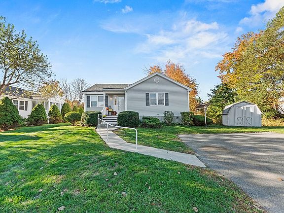 Home for the holidays! Welcome to East Bridgewater's sought after 55+ community where lifestyle and comfort intersect for an elevated quality of life. This sun-drenched ranch offers easy single level living & an open concept floor plan with a calming neutral palate. In addition to two generous bedrooms including one with an en suite bath, you will find an inviting living room, cozy dining area, large kitchen with counter seating and a charming three season room- an ideal spot to unwind with a peaceful garden view. The bedrooms, living & dining room enjoy plush carpet underfoot for comfort on those cool fall and winter days. Main level laundry and a half guest best complete this home giving you the perfect spot to enjoy your golden years. Additional features include large, full basement and shed for added storage space. This well managed association offers you the privacy of a detached home with the warmth and convenience of a community with clubhouse, fitness room & swimming pool.