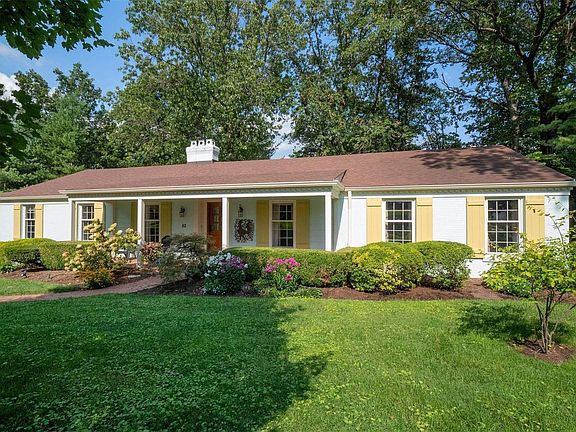 The stunning 2400 sqft ranch home in the heart of Ladue blends timeless charm with modern functionality. Nestled on a sought-after street, the 4-bd, 3.5-bath home welcomes you with lush gardens & exceptional curb appeal. The inviting front porch & solid wood/glass door opens into a spacious foyer that sets the tone for this home. The floor plan is designed for easy living & entertaining. The large living room with/ oversized windows & cozy fireplace seamlessly flows into the dining room, creating an ideal gathering space. The well-appointed eat-in kitchen includes stainless steel appliances, cherry wood cabinetry & elegant granite countertops. The adjacent family room overlooks the private/wooded backyard. The bedrooms are generously sized & the bathrooms are updated. Versatile space in the lower level with a rec area, full bath, laundry room, additional storage & garage. This home is ideally located w/in walking distance of Ladue schools & popular shops/restaurants along Clayton Road.