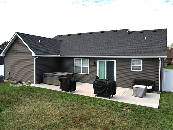 Move-in ready ranch home in Crawfordsville's desirable Diamond Ridge subdivision! Built in 2019, this 3-bedroom, 2-bath home offers 1,550 sq ft of modern single-level living with a low-maintenance lifestyle. The open floor plan features granite kitchen counters, a ceramic tile backsplash, and stainless-steel appliances. The private primary suite includes a walk-in tiled shower and generous closet space. Additional highlights include built-in eave lighting for year-round curb appeal, Bluetooth speaker lighting in the bath, and a spacious vinyl-fenced backyard-perfect for kids or pets. Attached 2-car garage for added convenience. HOT TUB INCLUDED! While Diamond Ridge is located in the North Montgomery School District, the neighborhood is uniquely served by both North Montgomery and South Montgomery school buses. Enjoy newer construction, community appeal, and modern single level living in Diamond Ridge!