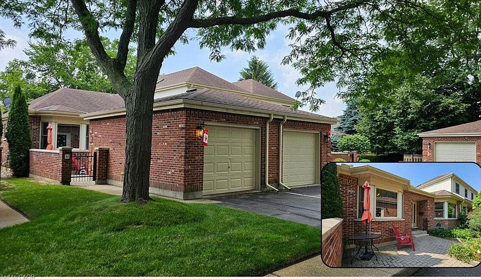 Sometimes the perfect home isn't about size - its about simplicity, comfort, and location. Tucked away in the quiet Lynn Court complex, this charming 2 Bedroom, 2 Bathroom Condo Townhome offers low-maintenance, single-story living, and is perfect for downsizers, retirees, or anyone seeking comfort and convenience in a prime neighbourhood. The bright and spacious kitchen features a breakfast nook with a bay window and gas stove, ideal for morning coffee or casual dining. The open-concept living and dining room showcases bamboo flooring, a cozy corner gas fireplace, and french doors that lead to your private deck with a power awning - a relaxing outdoor space great for entertaining or enjoying warm summer days. The primary bedroom boasts double closets and a private 4pc bath complete with a skylight that fills the space with natural light, while the second bedroom offers a charming bay window and easy access to the main 4pc bathroom. Enjoy flexible laundry options with a hookup for a stackable washer and dryer on the main floor, or a full-sized setup in the basement. The unfinished basement offers ample storage and is full of potential for future development. Additional features include an exclusive-use detached garage, interlocking brick courtyard patio, furnace and central air (2023), rough-in for central vac, water softener, and a Green Life Works Water Filtration System. This stylish condo combines comfort, functionality, and location and is everything you need for easy, stress-free living. Whether you're downsizing, retiring, or just ready for a slower pace in a beautiful neighbourhood, this home is ready to welcome you.