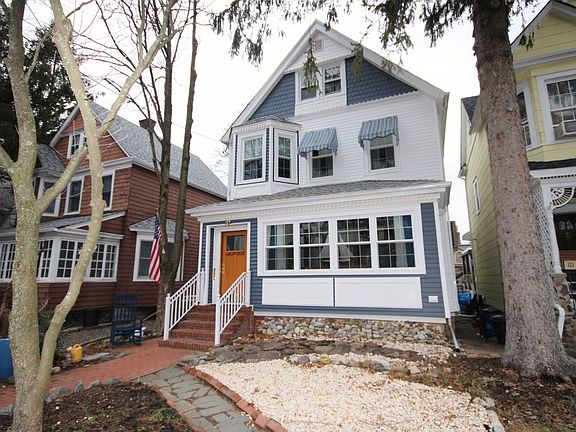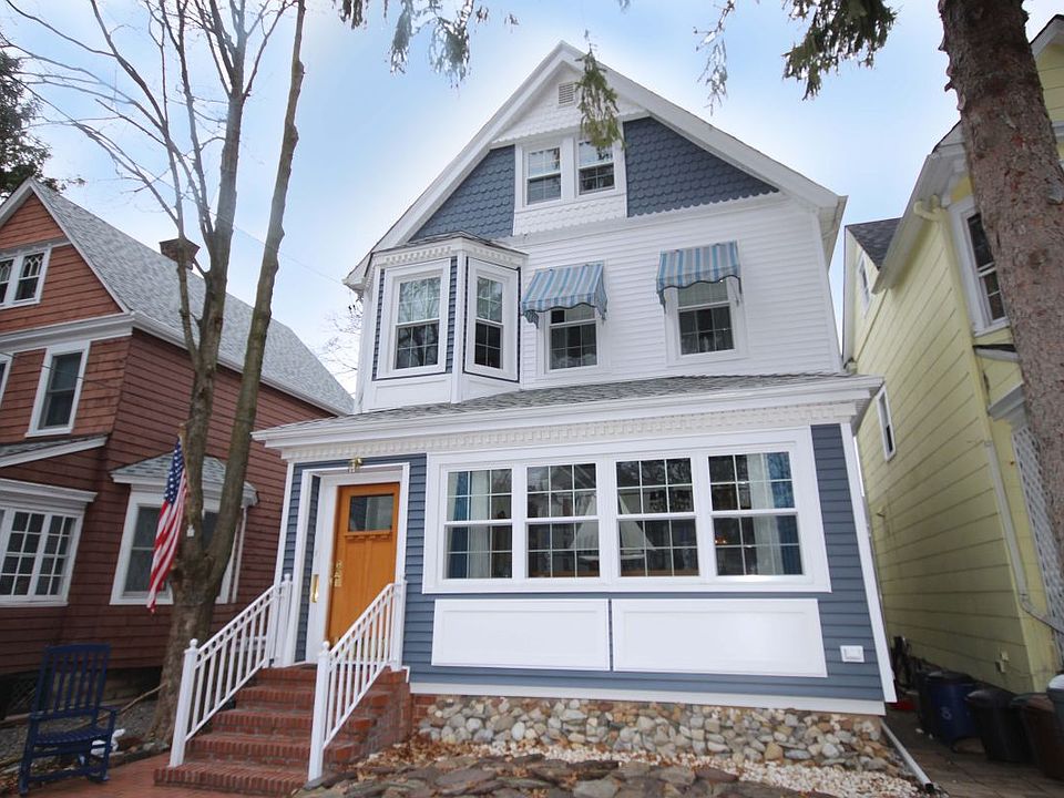 Set back away from the road with its own private 2-car parking area sits this beautifully and newly renovated detached Victorian-styled 1920s home that has 3 levels (1,980 sq. ft.) plus full finished basement, and is prestigiously located on a beautiful block in the collegiate area of Grymes Hill. From its exterior brick walkway to its interior crystal doorknobs, this home exudes both character and charm. Upon opening the half-glass vestibule door, the 1st level features oak floors throughout, a large living room with floor to ceiling built-in wall shelving and striking paned-glass accents, a beautiful shaker-style kitchen and dining room combination, including French doors leading to a blue slate and brick paved backyard. The U-shaped kitchen includes S/S appliances, granite countertops w/ a large peninsula, exposed brick chimney, additional built-in wall shelving, and marble backsplash with a unique, hand-painted scenic tile focal point above the range. In addition, there is a fully-renovated ¾ bathroom off the kitchen/dining area. The 2nd level features oak hardwood floors, 3 of 5 bedrooms, one of which makes for a perfect home office or baby room, a completely renovated full hallway bathroom with a beautiful double vanity and glamorous accents, as well as 2 split ductless heating & cooling systems in 2 of the 3 bedrooms. The 3rd floor features oak hardwood floors, an additional 2 bedrooms, including ample closet space and 2 split ductless heating & cooling systems. This home also features all new electric (200 amp), all new plumbing, including new boiler w/ 2-zone heating & hot water tank, all cast iron radiators, new windows, new vinyl siding, 5-year-old roof, as well as a brand new Generac house generator.