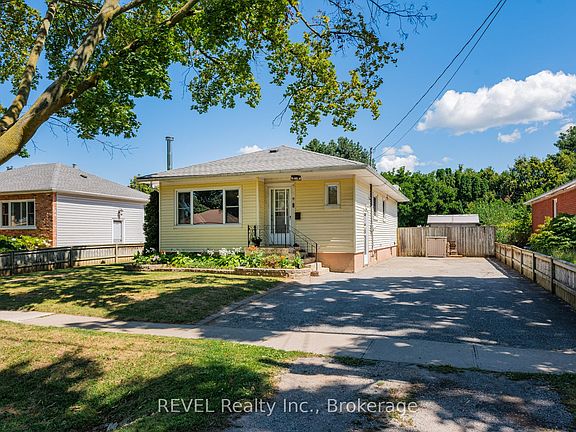 This lovely bungalow is located in a wonderful north-end neighbourhood close to the Welland Canal and the amazing outdoor canal recreation path! The home has been lovingly maintained by the same family since 1993, as you can see as you walk up to the home, and appreciate its tidy presentation. The double driveway offers ample parking and can easily accommodate a boat or a trailer! Inside, the charm of this 1954 build can be readily felt. The living room is spacious and could easily be used as a combination living/dining room, which has a great connection to the eat-in kitchen. The main floor also offers a family four-piece bathroom and 3 good-sized bedrooms, one being the primary bedroom with sliding doors leading to the back deck! Downstairs is all set up for family fun! The family room is a great size and has a bar area. It's all ready for movie or family game nights. There is also a wood-burning stove to cozy up to on the long winter nights. A 2-piece bathroom and utility room, which houses the laundry and a workshop area, can also be found on this level. The lot is 55 feet x 140 feet, and the backyard is fully fenced and secured for pets and children to play. There is a large wooden deck with a metal gazebo to sit out and enjoy the outdoors. The home is move-in ready, and any new owner can take their time to add their personal stamp to it!