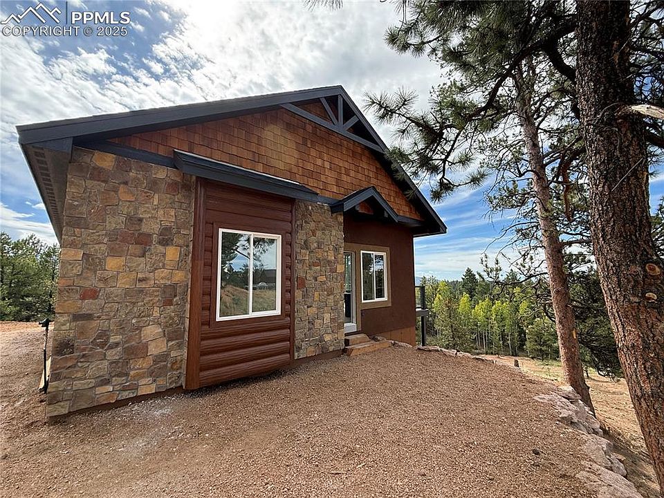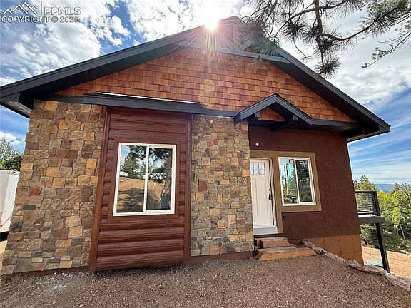**Brand New** STUNNING MOUNTAIN RETREAT, nestled in the heart of Colorado Mountain Estates, this beautiful home offers breathtaking views of mountains and striking rock formations. Built with a combination of Tru Log siding, real stone, and stucco, the exterior blends durability with mountain charm. Relax and take in the scenery from the spacious deck, perfect for enjoying Colorado’s great outdoors. Inside, the home features natural rustic-style cabinetry, dramatic polished granite surfaces, and durable luxury vinyl flooring for both beauty and practicality. The main living area boasts a stunning vaulted ceiling with custom designed box beams. The master suite is a true retreat with double sinks, a walk-in shower, and an expansive walk-in closet. A large laundry room, complete with extra cabinetry and a sink, adds convenience and storage. Two additional generously sized bedrooms share a well-appointed guest bath, making this home ideal for family or guests. This mountain home offers both comfort and style in a serene setting—perfect as a full-time residence or a peaceful getaway.