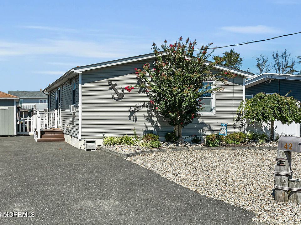 Located in the Waterfront Community of Baywood is where you'll find this well maintained Ranch styled Home with 50' of vinyl bulkhead & 4' dock (2002). Upgraded features include; (2025) ''Frigidaire'' dishwasher, (2024) storm door, (2023) 3 window a/c units, (2022) electric water heater, (2020) gazabo, firepit, (2019) fan/lights in both bedrooms & frost free hosebibs, (2018) main bath remodeled, vinyl siding, driveway, landscaping, shed & fence, (2017) additional support & insulation in the crawlspace, (2016) ''Corian'' countertops, ''Samsung'' gas range, microwave hood & gutters, (2015) Interior ''Masonite'' doors & hardware, (2014) Thermopane tilt-in windows and (2011) ''Samsung'' refrigerator. Floor plans flows nicely as you enter into the open Dining & Kitchen area that features lam flooring, fan/light, recessed lighting, complete stainless steel appliance package and a door out to the 12'6" x 15'5" composite decking. Living Room also with laminate flooring & beamed vaulted ceiling. Laminate flooring continues throughout the hallway & both bedrooms in which the Primary features it's own private full bath. Main full bath has ceramic tiled floor, one piece fiberglass tub/shower unit & wooden vanity with cultured marble top. In addition there is a "Ring" doorbell, aluminum fascia & soffits, riverbed stone exterior, outdoor shower, "GE" one piece washer & dryer, 200 amp electrical service with 24 circuit panel box & more. Please schedule your viewing soon.