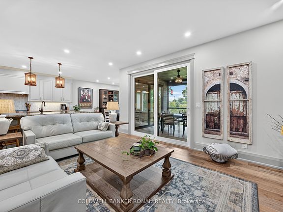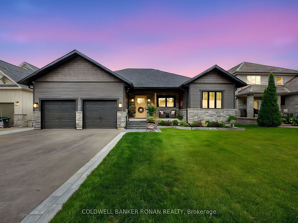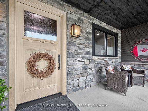 Welcome to your dream home! This one year old custom built stunning property combines the convenience of in-town living with the serene ambiance of a cottage. Featuring over 4,000 square feet of finished living space and 9 foot ceilings with 3+ 2 bedrooms this home boasts an open concept design with designer-quality finishes throughout. The chefs kitchen is complete with a walk-in pantry and beverage fridge. Engineered hardwood floors run throughout the home, and multiple walkouts lead to a covered porch with glass railing, perfect for enjoying the scenic views of the river. The custom front door sets the tone for the rest of the home, which also features a rec room with a rough-in for a wet bar, in-floor heating in the basement, lower level walk-out to another covered patio, a massive cantina perfect for a wine room and a large garage. Professionally landscaped and truly turnkey, this home is ready for you to move in and enjoy! Walk to the quaint downtown and fabulous restaurants and nearby are parks, shopping, schools, golf and walking trails.