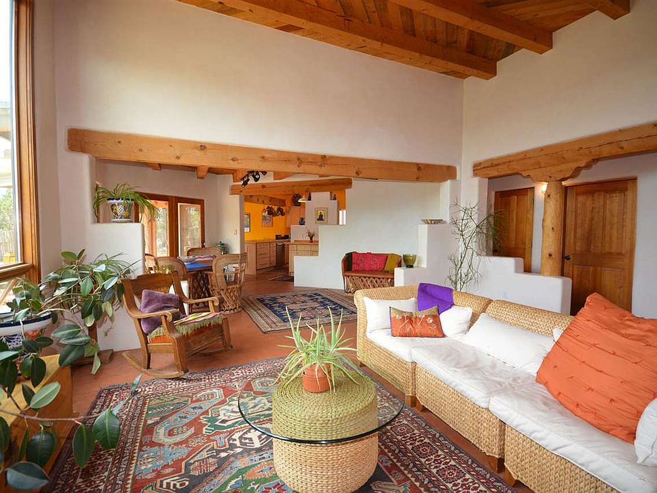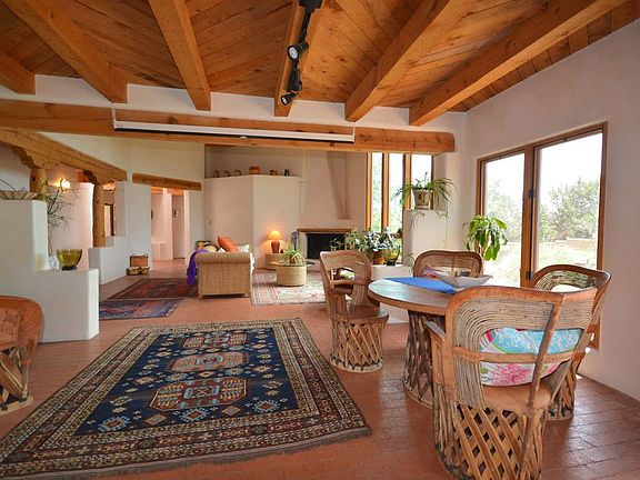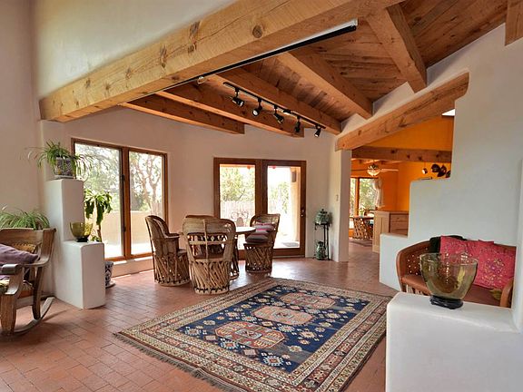 Very private setting in Eldorado. Situated at the back of the lot, against ranch land to the north. Great custom home with good bedroom separation, wood beams and ceilings throughout, all brick floors and a gorgeous sculpted fireplace. This home has a serene feel and a very comfortable flow to the great room, dining and completely remodeled kitchen. Private walled in courtyards, including one off of the master that has an in ground hot tub for your relaxing pleasure. The private well will help you keep the courtyards looking their best.