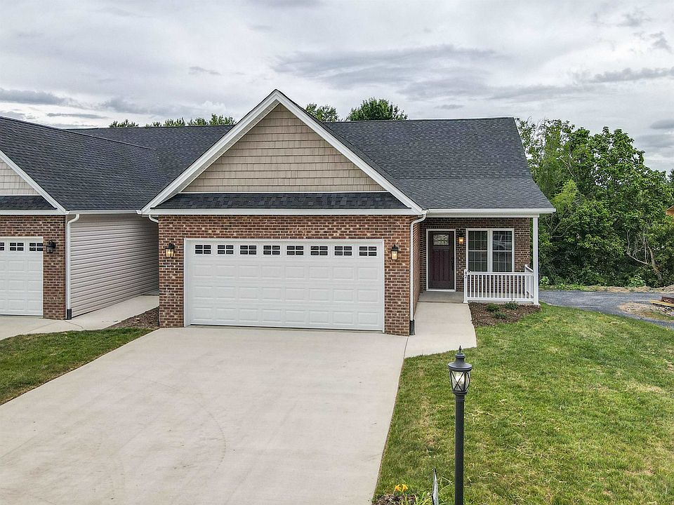 One level new construction townhouse with full walk out basement. End unit, all brick. Three bedrooms and two full baths. Open custom kitchen with white cabinets and granite countertops. Solid oak hardwoods through out main areas. Covered rear porch. Pull down storage over garage.