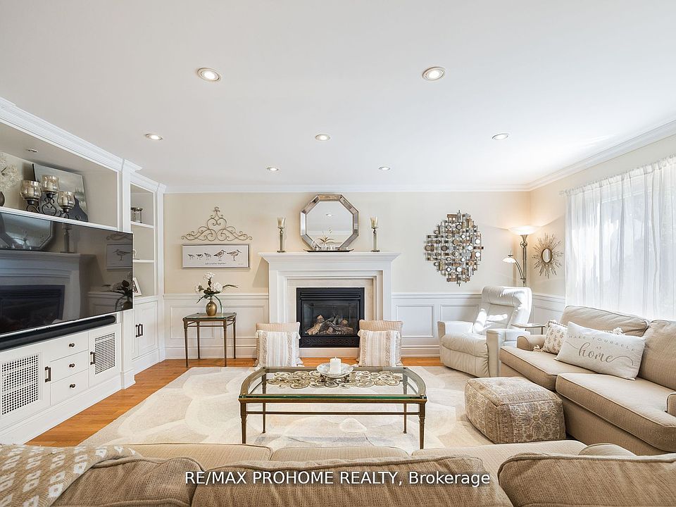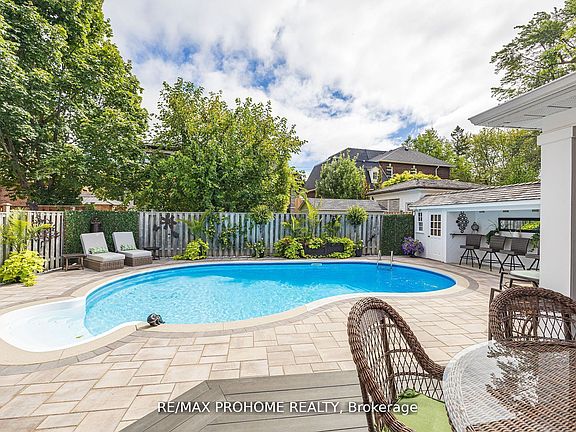 Welcome to 42 Foundry Crescent, Markham! This exquisite 5+1 bedroom home offers approximately 3,000 sq. ft. on the main and second floors and sits on a quiet, family-friendly street with a premium lot. Combining elegance, comfort and entertainment, the property showcases stunning designer decor and a backyard paradise. Inside you'll find a meticulously designed open-concept layout featuring an updated kitchen with granite countertops, custom backsplash and stainless-steel appliances. The spacious family room is adorned with a custom-built bookcase and gas fireplace, complemented by custom wainscoting, cornice mouldings, upgraded trim and pot lights throughout. Upstairs, the primary bedroom is a true retreat complete with a spa-inspired ensuite. The professionally finished basement offers a great room with fireplace, an additional bedroom and a 3-pc bathroom ideal for guests, extended family or a home office. Step outside to your private oasis boasting a cabana, bar, BBQ station, dining area, a sparkling saltwater pool and a convenient 2-pc washroom, making it an entertainers dream. Artfully designed landscaping, PVC decking, and extensive interlocking pathways and driveway enhance the homes curb appeal and functionality. This sought-after location is close to top-ranked schools. Families will also appreciate nearby parks, playgrounds, community centers and scenic nature trails. Minutes to GO Transit, major highways (407/404), shopping plazas, restaurants and all of Markham's amenities. If you're seeking a one-of-a-kind property that blends style, comfort and a vibrant lifestyle, 42 Foundry Crescent is a must-see!