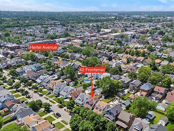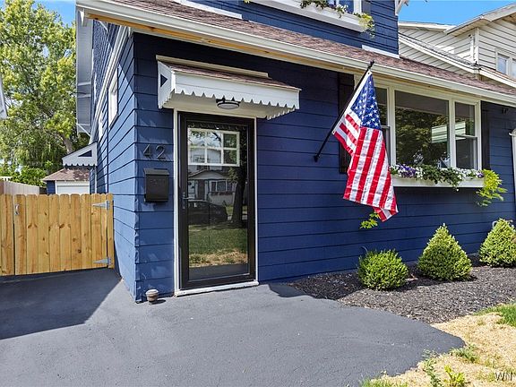 Welcome to 42 Frontenac Avenue! This beautifully renovated 4-bedroom, 2-bathroom home is nestled in the heart of North Buffalo, just steps from the vibrant shops and restaurants of Hertel Avenue. Thoughtfully re-done from top to bottom, this home combines modern finishes with timeless character for truly turn-key living. Step inside to a welcoming, functional entryway with built-in storage, leading into a spacious living room perfect for both relaxing and entertaining. The open-concept kitchen features quartz countertops, stainless steel appliances, a large island, and ample cabinet and counter space. The kitchen flows seamlessly into the dining area and living space, creating an ideal layout for gatherings. The first floor offers a spacious bedroom and a luxurious full bathroom complete with a soaking tub and walk-in shower—ideal for guests or convenient first floor living. Upstairs you will find three generously sized bedrooms and a stylish second full bathroom. Outside, enjoy a large backyard with a brand new privacy fence. Ideal for entertaining, along with a one-car garage and a spacious driveway. In addition to stunning cosmetic updates, all major mechanical systems were upgraded in 2025- including electrical, plumbing, furnace, central air, hot water tank, drywall, windows and both interior and exterior paint. Please check attachments for list of updates. Showings begin on Saturday 9/6 at 9am. There is nothing to do but move in and enjoy!