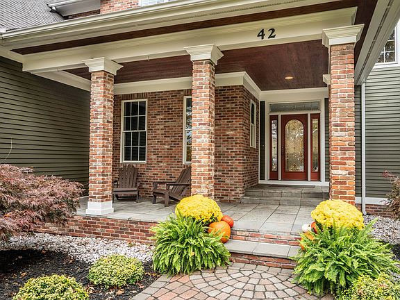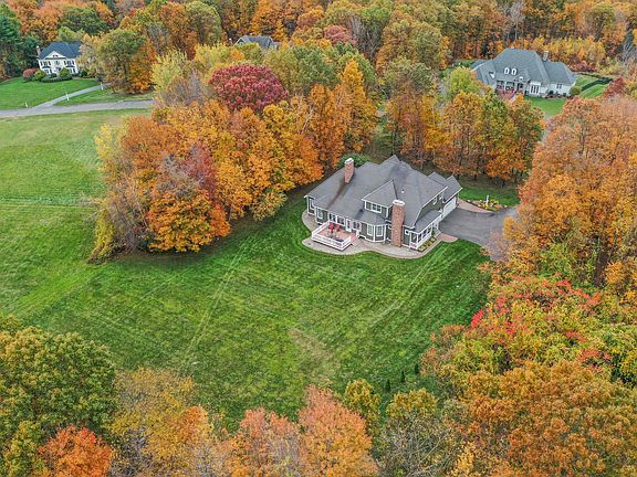 From the moment you enter, you'll be enchanted by the warmth and sophistication of this pristine, designed home. Ideally positioned on two scenic acres in the sought-after Hoffman Farms Subdivision, this property features distant vistas, a level lawn, and a perfect setting for sunlit days and intimate evenings by the fire. Beautiful hardwood floors grace the main level, accentuated by a striking entry that leads into a spacious, eat-in chef's kitchen. This culinary hub showcases rich cherry cabinetry, premium granite countertops, and ample storage. The welcoming family room, with its fireplace, offers an ideal space for relaxation. An elegant dining area is perfect for hosting. An expansive deck provides an excellent spot to enjoy tranquil natural views. A three-season room overlooks the meticulously landscaped and natural surroundings. The home offers two luxurious primary bedroom suites. The main primary suite serves as a private retreat, complete with a custom California walk-in closet and a spa-inspired bathroom featuring a freestanding soaking tub, granite vanity, and walk-in shower. Upstairs, three additional bedrooms ensure maximum comfort, each with plush carpeting, walk-in closets, and private full baths. The walk-out lower level is designed for sophisticated entertaining, with a Chicago-style bar, dedicated game area, recreation room, and exercise space. Additional features include an oversized three-car garage and stunning sunset views from the patio. Located at Hoffman Farms!