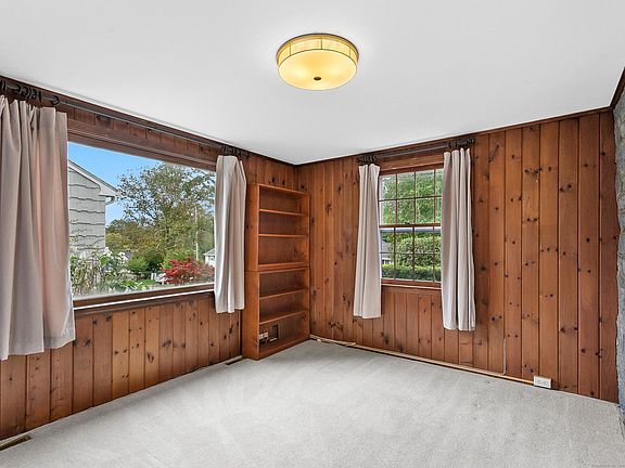 Storybook stone Cape on a quiet cul-de-sac in sought-after Fairfield University area. Set on over one-third of an acre, this inviting home features a step-down front-to-back living room with wood-burning fireplace and French doors leading to an expansive deck overlooking the large backyard. A kitchen with eat-in island, formal dining room, office/den and full bathroom complete the first floor. The lower level includes a beautifully finished family room with built-ins. A spacious two-car detached garage and whole-house Generac generator add comfort and convenience. Classic custom touches include arched doorways, glass doorknobs and hardwood floors throughout. Agent related to seller.