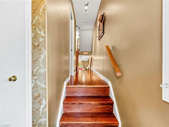 Open Houses Sat June 1st & Sun June 2nd, 2 - 4 PM. Welcome to #31 - 42 Green Valley Drive in the beautiful neighbourhood of Pioneer park. This unit is a rare gem backing onto greenspace! Plenty of trails, the grand river and shopping are just a few steps away from this home. This desirable 3 bedroom 3 bathroom end unit townhouse is loaded with natural light! Plenty of windows! Walk in through your covered front porch. Entry way has plenty of space with a handy closet and a two piece bathroom. The Dining Room and Living Room provide a gorgeous setting overlooking mature trees. Hardwood flooring throughout main level! Sliders lead to your private deck ideal for BBQing and entertaining. Kitchen has plenty of storage with a convenient storage cupboard. Dishwasher recently updated (2022). Upstairs you will find a spacious Primary Bedroom complete with a walk in closet and a 4 piece ensuite! Two other good sized bedrooms including the corner one with windows on both sides! Another four piece bathroom completes the upper level. The lower level features a rec room complete with a walk out leading to your private outdoor seating area. Also the laundry room allows easy access to your garage. Other updates include: Dryer (2024), Garage Door (2020), Roof (2017), Water Softener (2017), Located near schools, shopping and more, call to book your private booking today!