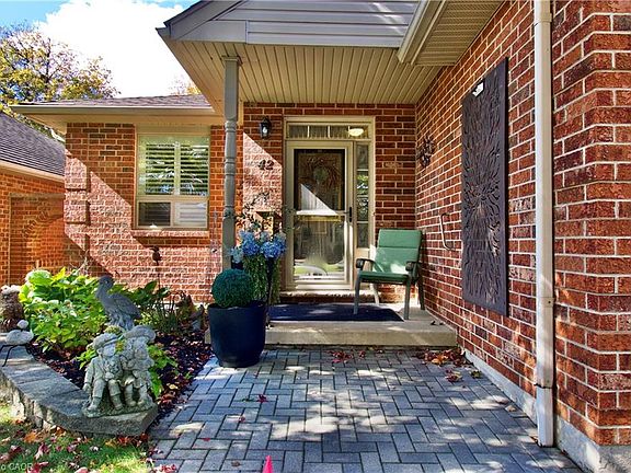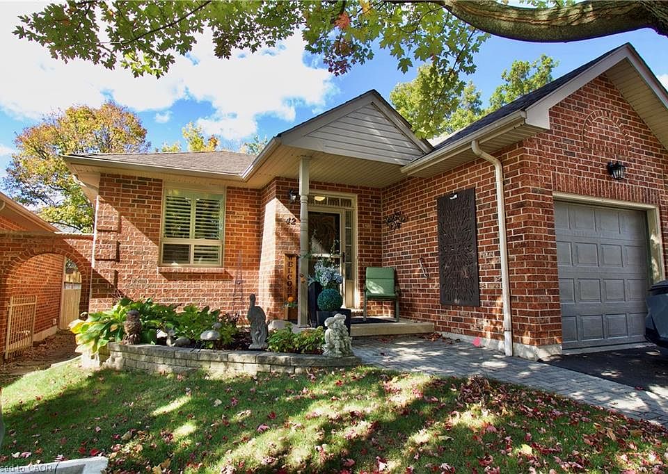 Beautiful and Bright END UNIT BUNGALOW with Great Curb Appeal, Nestled in the Sought-After Adult Community of Twenty Place. Welcome to 42 Greentrail Drive. Approx 1700 SqFt of Living Space on Both Levels with Elegant Crown Moulding, California Shutters and Quality Upgrades throughout. The Perfect Blend of Style and the Comfort You Desire. Large Eat-in Kitchen with Pantry Cupboard, Plenty of Cabinetry & Counterspace and a Pass-Through allowing for more sunlight and Easy Entertaining. The Living Room Features an Ambient Fireplace, Attractive Coffered Ceiling and French Doors to Your Private Backyard with Sizeable Deck, Hard-top Gazebo and a BBQ Patio Area, Extending Your Living Space to Flow Outdoors for Relaxation or Large Summer Gatherings. Serving the Primary Bedroom, is the Luxurious Boutique-Hotel Inspired Primary/Main Bath with Floor-to-Ceiling Ceramic & Glass Shower, a Sleek Quartz Vanity & Matching Linen Wardrobe. Head Downstairs to the Huge Bonus Living Room, an in-law or Guest Bedroom with Ensuite privilege and secondary access from the Living room. There’s also a Oversized Utility/Storage Room with Floor-to-Ceiling Built-in Shelving. Furnace (2021) Owned Hot Water Tank (2021), No Rentals. Several Close-by Visitor Parking Spaces, One conveniently adjacent to the Front Yard. The Club House offers Resort-Style Amenities. Indoor Pool, Sauna, Pickle Ball, Gym, Tennis, Library, Banquet Room, array of Activities and Socials. Minutes to Ancaster and Hamilton Mountain’s Hub for all your Essential Needs, Shopping & Dining, Parks & Golf Courses and HWY Access. The Perfect Location & Lifestyle Awaits. Welcome Home!