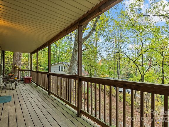 Charming 2BR/2.5BA + BONUS Room Home in Maggie Valley Country Club Estates! This 1998-built mountain home offers comfort, convenience, and great potential! Featuring 2 bedrooms, 2.5 bathrooms, and a versatile BONUS room. Enjoy the full-length covered porch that wraps around the front and side. A large, level paved driveway provides plenty of parking for multiple vehicles. Step inside to the main level with natural light, engineered oak flooring, and a cozy gas log fireplace. The living, dining, kitchen, and laundry areas are all located on the main level for convenience, along with a half bath and the primary bedroom featuring a double-vanity ensuite bath. Upstairs, you'll find a second bedroom, a full bathroom, and a generous BONUS room with a closet. Partial fencing in the back and side yard. The carpet in the bedrooms and stairs is in poor condition. Located just 1.2 miles from the Maggie Valley Club (membership not included), enjoy access to golf, dining, fitness center, pool, and tennis with a membership. Only 7 miles to downtown Waynesville and close to many other area attractions. Short Term Rentals Allowed. Spectrum High Speed Internet. No City Taxes. $100/Yr HOA for Roads.