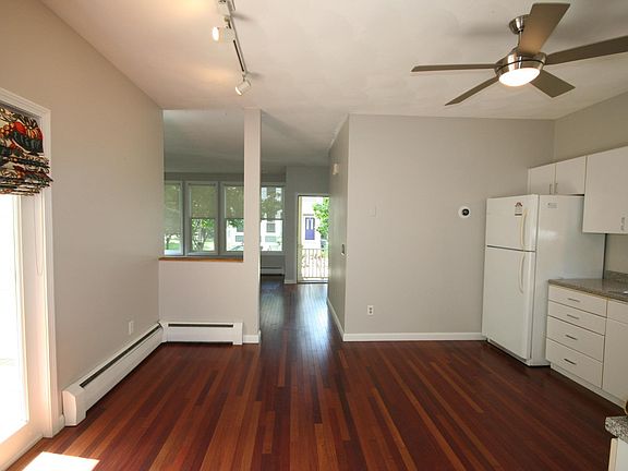 Available August-This super sunny, very spacious condo located on Hammond Street is one of the loveliest streets in the Historic Armory Districts West Side! The first floor has an open concept living room/dining area that expands to the eat-in kitchen, perfect for entertaining guests! Off the kitchen is a private deck for grilling or just hanging out reading your favorite book while sipping your favorite beverage! The first floor also has a nice size bedroom with 2 large closets and a full bath. The lower level is also open concept ideal for an office, yoga room, or guest bedroom and has full sized laundry and storage area. Central air too!