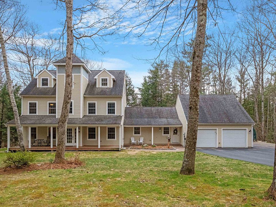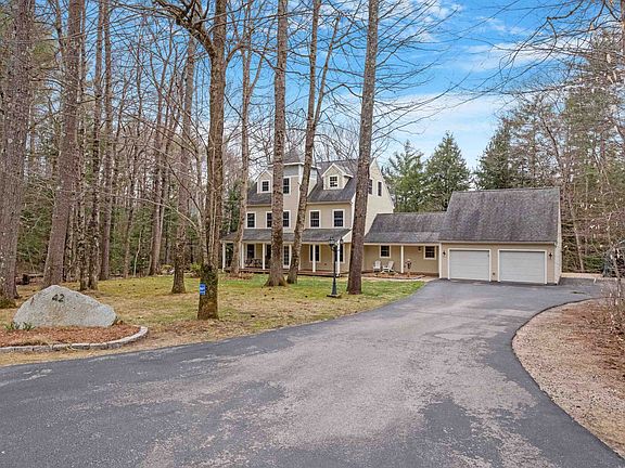 Welcome to your secluded haven near Lake Winnipesaukee, in the heart of Moultonborough, NH. This stunning 4-bedroom, 3.5 bathroom home boasts luxury and convenience, nestled less than a mile from the Lee's Mill public boat launch, perfect for water enthusiasts. Situated just 1.4 miles from the Birch Hill Country Club, golfing enthusiasts will delight in the proximity to this esteemed course. Spread across 3 acres of picturesque land adorned with trails, this property offers the perfect blend of privacy and outdoor adventure. Inside, the first-floor primary suite provides unparalleled comfort and convenience, while the second-floor en-suite ensures privacy for guests. Ascend to the third floor, where an expansive open-space media room awaits, promising endless entertainment possibilities. Experience the tranquility of the neighborhood while sitting on your 3 season porch directly off the open kitchen and living space. Car enthusiasts will appreciate the 2-car garage, supplemented by an additional soft cover garage for your boat, or extra storage needs. Whether you're seeking relaxation or recreation, this meticulously crafted home offers the ultimate in lakeside-inspired living. Don't miss your chance to experience the epitome of New Hampshire charm and luxury. Open House Saturday, May 4th 11-1pm.