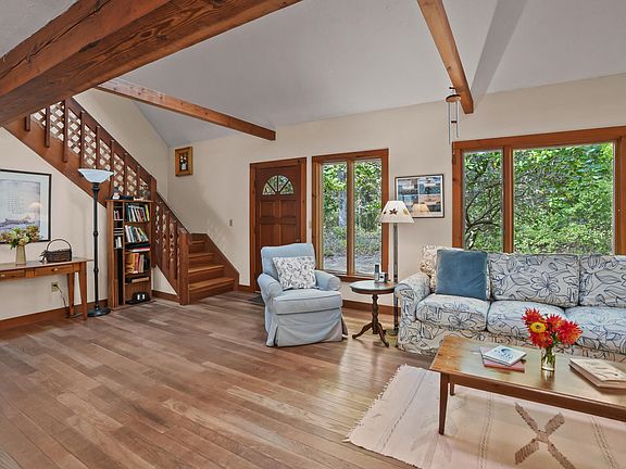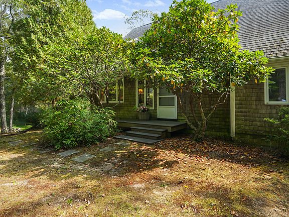 Nestled off Hidden Village Road on 2.1 private wooded acres, this spacious 4-bedroom, 2-bath home offers the perfect blend of peace and convenience--just 1.5 miles from Lambert's Cove Beach and a short distance to Ice House Pond. Inside, enjoy an open-concept layout with cathedral ceilings, skylights, and an abundance of natural light. Sliding doors lead to a sunny, south-facing deck with tranquil woodland views. The main level features a large primary bedroom with an adjoining full bath, while the second floor includes a second spacious bedroom, full bath, and two additional guest bedrooms. Additional highlights include a full basement with finishing potential, outdoor shower, large deck with awning, great yard, and hot tub. Located minutes from Up-Island Cronig's, State Road Restaurant, West Tisbury Post Office, and Conroy's Apothecary.