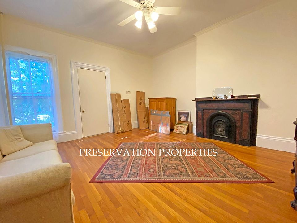 Available for 10/1. Super location in Newtonville Square! Cute 2 bedroom, 1 bath apartment steps from Commuter Rail, restaurants, shops, bank and Star Market. 1st floor unit has nice kitchen open to dining area. Spacious living room with floor to ceiling windows and ornamental fireplace. 2 bedrooms are smaller, but main bedroom will fit queen size and other will fit full size beds. High ceilings and hardwood floors throughout. Gas heating. Parking for 2 cars in driveway. Property ID 25201 No washer/dryer, laundromat up the street