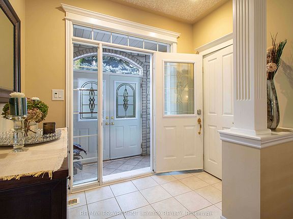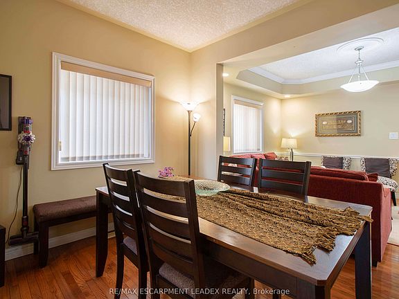 Spectacular Meadowlands of Ancaster! This beautiful 4-bedroom home showcases exceptional quality, upgrades, and a unique layout. Features include 9' ceilings on the main level, a dramatic 2-storey vaulted family room with gas fireplace, and hardwood flooring throughout (except the family room). The elegant dining room offers a coffered ceiling with crown moulding and recessed lighting. Additional highlights include a solid oak staircase, California knockdown ceilings, exposed aggregate front porch and driveway trim, and a patio deck perfect for entertaining. Conveniently located near shopping, schools, scenic areas, and quick access to Hwy 403 and the LINC, Tenants are responsible for all utilities and the rental cost of the water heater.