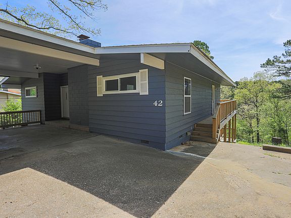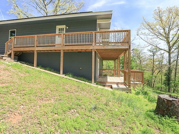 Calling all Mt Bikers. Completely remodeled home with a magnificent view of the Ozarks, The Tunnel Vision Bike Trail is just below the house and only a few feet away from your back door! Home has solar panels which will be a huge bonus for lower utility bills. New wrap around deck, and a second lower deck to enjoy the outdoor views. Completely renovated interior with all new bathrooms, kitchen with quartz counters and stainless appliances. Modern Electric Fireplace flanks the vaulted living room wiith lots of natural light. Hard surface flooring throughout . Refrigerator, and washer/dryer included for tenant use.