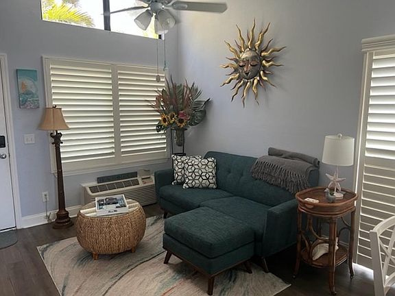 Welcome to Dolphin Cove. This is the best little secret in New Smyrna Beach. Located between the Historical Canal Street, Marina, Public Boat ramp and 1 mile to the Beach off of Flagler Avenue. Super adorable corner unit Condo that has been expertly designed to accommodate both entertaining and every day family living. You will love the open concept floor plan and abundant natural light this home provides. Offering quick and easy access to your dining area and equipped kitchen where the chef of your group will find all that you need to prepare your home cooked meals. Private fenced patio is a perfect place to BBQ, entertain or play. Bring your boat! This unit comes with a private deeded boat slip so you can enjoy a day on the water! After a long day boating, kayaking or paddle boarding unwind in in your oversized Master bedroom complete with large comfortable King bed with ensuite bath. While the guest bedroom offers a trundle that turns into a queen or 2 twins! Condo comes with washer and dryer. Dock use is $150 one time fee.