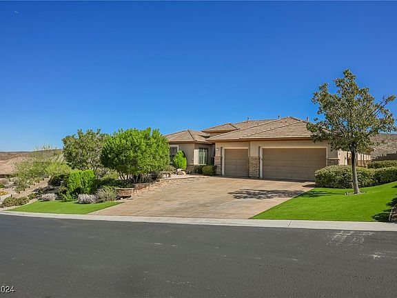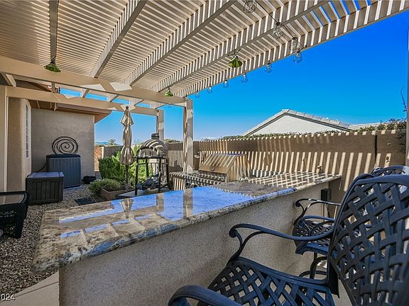 This breathtaking one-story luxury home spans 3,449 sqft and showcases $450k in custom upgrades, elevating it beyond the ordinary. At its heart is a stunning chef’s kitchen with breakfast bar and premium appliances. Newly installed Anderson/Window World windows flood the home with natural light, while the extraordinary 2,000-bottle wine room, set at a controlled 54°, offers a wine connoisseur’s dream. The 30-foot elevated terrace shines with a custom lighted concrete stairway, built-in seating, and a gas fire table, all perfect for enjoying sweeping 240° views of the Las Vegas Strip and backyard mountains. The 600 sqft covered outdoor entertainment area, complete with kitchen, pizza oven, and oversized glass fire table, elevates the home’s entertainment potential. The custom pebble tech pool and spa, enhanced with new water features and tile, are complemented by luxurious lounging spaces. Experience elegance with flawless finishes and inspired design throughout this beautiful home!