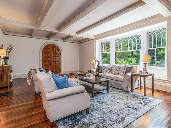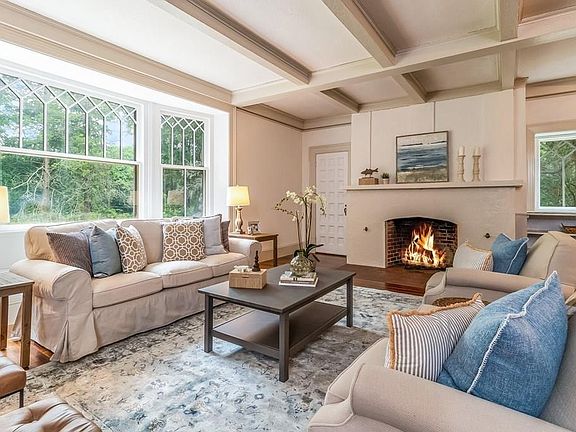 Minutes away from the IPSWICH RIVER with seasonal WATER VIEWS, on a two-acre lot reveals this hidden gem - THE GREYSTONE VILLA. Built in 1898 by Architect James T. Kelley and inspired by "Richardsonian Romanesque" style, the villa was a mix of Southern France, Spanish and Italian Romanesque architectures. Entering the charming round-headed Romanesque front gate is an elegantly decorated living room featuring a fireplace, a large bay window and original hardwood floor with beam ceiling. The formal dining room features a fireplace, built-in shelves, a chandelier and bay windows. Cook in a custom-built kitchen overlooking the serene backyard and enjoy breakfast in front of the fireplace. Completing the first floor is a stunning library, a half bath and a mudroom. The second floor consists of five light-filled bedrooms with generously sized closets, three full bathrooms and two fireplaces. An In-Law Suite with kitchenette, a bedroom and a living room area with a spacious walk-out balcony.