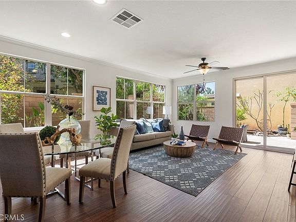 Nestled in the highly sought-after Sevilla subdivision of Portola Springs, this stunning residence welcomes you with nine-foot ceilings throughout and an open floor plan ideal for both entertaining and everyday living. The gourmet kitchen features porcelain-tile flooring, granite countertops, stainless-steel appliances, a central island with bar seating, and rich wood cabinetry. Double sliding glass doors seamlessly connect the living areas to one of the subdivision’s largest backyards, offering plenty of room for outdoor dining and recreation. The first floor also includes a private bedroom suite with a full bathroom and premium oak engineered-hardwood flooring. A beautiful staircase of premium solid-oak treads leads upstairs, where premium maple engineered-hardwood flows through the hall and secondary bedrooms. The spacious master suite is bathed in natural light from multiple windows, offering a generous walk-in closet and a luxurious en-suite bathroom with premium marble flooring, granite sink tops, dual vanities, a walk-in shower, and a standalone tub. A well-placed laundry room completes the second level. Other standout features include a serene location on a quiet, private road; LED lighting throughout; a whole-house water filtration system; and an attached two-car garage with ample street parking. All of this is perfectly situated within the Portola Springs Community, where over 20 neighborhood parks, sports courts, Olympic-size swimming pools, and clubhouse spaces await—plus top-rated schools in the Irvine Unified School District.