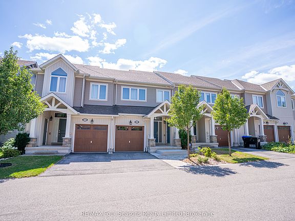 Price Drop! A fantastic opportunity to own a freehold townhouse in the Blue Fairway community conveniently located minutes away from downtown Collingwood and Blue Mountain. With 2 bedrooms and 2.5 bathrooms, this modern two-storey townhouse is perfect for a weekend vacation property or an older couple looking for a quiet and safe neighbourhood. The main entrance welcomes you with a covered porch that leads into a spacious foyer with lots of closet space, access to the attached garage and a powder room. Continuing on is the open concept kitchen and bright living room with vaulted ceilings and sliding doors to the backyard space. On the second level you will find the sizeable primary bedroom with a walk-in closet and a 4-piece ensuite offering lots of natural light. The additional bedroom is great for guests or office space with the second 4-piece bathroom ideally located next to it. You will also find the stackable washer and dryer neatly tucked away in a closet on the landing. The full size, unfinished, new framed basement presents lots of opportunity for additional storage or future living space with roughed-in plumbing already in place. Enjoy worry-free living by reaping the benefits of a townhouse that is only 7 years old with high-efficiency natural gas forced air, central air and remaining transferable Tarion warranty. This lot was originally sold as a premium lot due to its ideal location, situated just mere steps from the exclusive Blue Fairway gym, games room and the incredible heated outdoor pool. This prime location is also near the Cranberry trail and boardwalk, Cranberry golf course, White's Bay and so much more. If you are looking to live in a community that offers a sense of peace and tranquility, then this is the home for you.