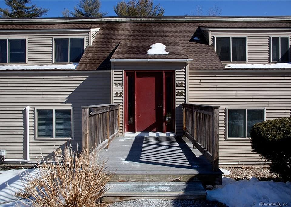 BEST LOCATION IN HERITAGE GLEN! Enjoy lovely views of the pond and peaceful woods from the expansive, partially covered deck. Set at the beginning of the complex, it's an easy walk to downtown Simsbury, the library and all the activities that take place in this wonderful town! Set on the lower level of the 4-plex, you can walk right out to the yard from your deck. This 2 bedroom condo has been recently updated with a beautiful granite kitchen, new appliances, subway tile backsplash, b-bar and flooring. The living room/dining room space has a warm fireplace, new composite flooring, ceiling fan, recessed lighting and sliders to the deck. Spacious master bedroom has a private full bath while the 2nd bedroom has a hall bathroom. The laundry is in the main hallway. There is a 1 car garage. Enjoy relaxing at the quiet pool and pool house! Assessments: Roofs: $84.71 per mo. until April 2022. Sliders: $104.57 til 2/23. Optional cable: $24 mo.