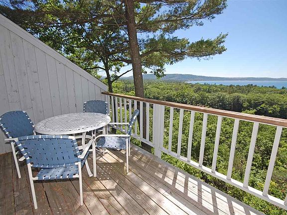 This is a rare offering of a full ownership, three bedroom, two bathroom ridge line condo in The Homestead with stunning views of Lake Michigan. Only 16 even exist. This locations offers privacy and is within easy walking distance to the beach. It has an open, spacious living area, dining area, and kitchen. This upper level unit also has no one else above it, and should serve as a quiet, peaceful retreat perched high up in the hills with sweeping vistas of Sleeping Bear Bay and South Manitou Island. Excellent rental history. Sold furnished with some exceptions.