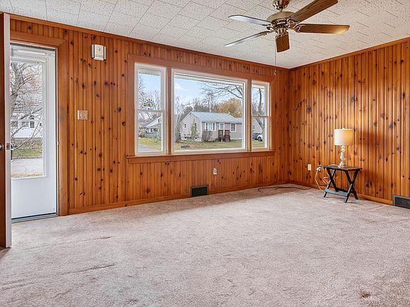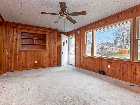 Mid-century Ranch style home located in a quiet neighborhood in the heart of Westbrook, close to all services. The city has this home listed as a 2 bedroom, however there is a bonus room with a closet and privacy doors which can be used as a third bedroom, den, or dining room. All of the rooms have vintage knotty pine wooden walls, and there are replacement windows, an eat in kitchen, hardwood floors in the Living room and hall, and carpeting throughout the bedrooms. There is a sunroom located between the house and single car garage perfect for entertaining during those summer nights. The fenced back yard has an oversized shed, cinder block fire pit, and a patio.