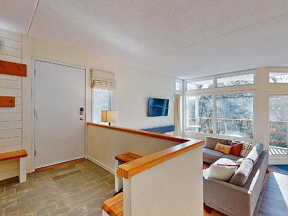 Located in the heart of Vermont’s Mad River Valley, this turnkey two bedroom, two bath condo at The Bridges Resort in Warren offers the perfect mix of comfort, convenience, and four-season recreation. Just a two minute drive to Sugarbush’s Lincoln Peak--or hop on the free seasonal shuttle steps from your door--it’s a dream base for skiers, hikers, golfers, tennis players, and outdoor enthusiasts alike. Step inside to find a welcoming mudroom, in-unit washer/dryer, and thoughtfully designed storage, making mountain living easy. The sunken living room, bathed in natural light, features a cozy gas fireplace and windows that overlook a scenic forest, creating a peaceful, treehouse-like feel. A separate dining area and private balcony offer ideal spots to relax or entertain across all seasons. The primary bedroom includes an en-suite bath, while the second bedroom enjoys a full bath just across the hall. The Bridges Resort boasts top-tier amenities: indoor and outdoor pools, tennis courts, hot tubs, fitness center, EV charging, saunas, game room, playground, and more. Whether you're seeking a weekend escape, a rental investment property, or a year-round home base in the Green Mountains, this rare opportunity delivers the full Vermont experience in one of the state’s most desirable resort communities.