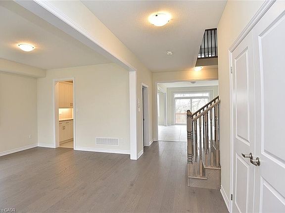 Welcome to 42 Mears Place, in the newly developed Paris Riverside neighbourhood in Brant County. Built by Crystal Homes in 2024, this modern “Wildflower” model offers 3,314 sq ft of living experience for your family, with 5 spacious bedrooms and 4 bathrooms. You will be greeted by an abundance of natural light leading into an impressive open-concept kitchen, with a large island, granite countertops and large windows. This kitchen is designed for both functionality and style. With a long list of upgrades throughout the home, every detail has been carefully considered. The 2 levels feature upgraded hardwood flooring, adding warmth and sophistication. The living room-dining area is inviting and spacious. The family room has a gas fireplace for added ambiance. There is a main floor laundry with indoor access to the garage. Smooth ceilings throughout enhance the overall sense of openness and modern design on both floors. Upstairs the luxurious primary bedroom boasts a spacious walk-in closet and a 4-piece ensuite, offering a peaceful retreat for relaxation. An additional 2 bathrooms have been added to the second floor, ensuring every member of the family enjoys privacy and comfort. Two of the secondary bedrooms share a semi-ensuite, ideal for siblings or guests. This home is situated on a premium ravine lot, with a sprinkler system in place. This family-friendly neighbourhood is just minutes from downtown Paris, beautiful parks, and all the amenities Paris has to offer. Also, easy highway access for commuters. Don’t miss the opportunity to make this incredible property your home! RSA