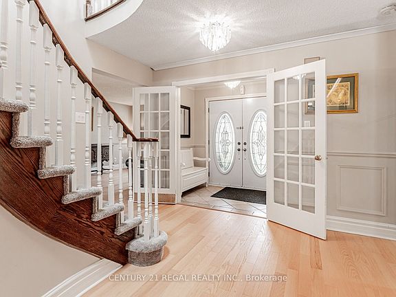 Welcome to 42 Milner Crescent - Steps to Rotary Park at Duffins Creek and the wonderful Ajax Waterfront Trail. An ideal South Ajax location with over 4600 sq. ft. of thoughtfully finished Living Space. Situated on a quiet street just north of the lake and adorned with mature, colourful, perennial gardens front and back. The Enclosed Double Door entry welcomes you to a spacious, airy, light interior. Hardwood Flooring, 7" baseboards, crown moulding, wainscotting, huge windows and large principal rooms. This one checks all the boxes. Large formal Living and Dining rooms, each with a Bay Window, are separated by lovely French Doors. Productivity levels will soar in the ground floor executive-sized Den. The open concept, refreshed Family Room features a Woodburning Fireplace with Insert - so cozy on cold winter nights. The expansive, south facing Kitchen offers a classic, functional design and features a center island and a generous Pantry. The Breakfast area is surrounded by windows and has a French Door Walk-out to the massive, two-tiered 40 ft Deck - ample privacy courtesy of the well positioned landscaping. The beautiful lower level is for fun and relaxation with a Billiards area, a Media zone with Gas Fireplace-stove, a Cocktail zone featuring custom cabinetry and Corian Island, and a Game/Play zone for the kids. A separate Exercise room can be easily converted to Bedroom 5. The sundrenched top floor has windows in every direction and was recently beautified with Hardwood Flooring (Aug '25). A well-configured 5-piece main bathroom is complemented by the large family-friendly double vanity. Three generously-sized secondary bedrooms feature large windows and closet organizers. The Primary bedroom spans the entire back of the home and boasts, large south facing windows, 2 walk-in closets and a 4-piece ensuite with tub. Come and discover coveted South Ajax