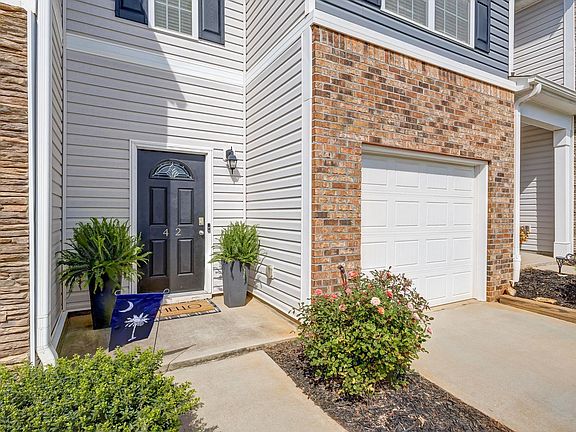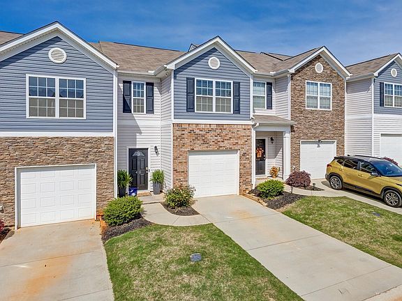 Move-in ready and affordably priced, this newer townhome with one-car garage in Brushy Creek Townes is in a prime location on the Eastside of Greenville and Greer. Freshly painted throughout, this 3-bedroom, 2.5-bath home features updated lighting & ceiling fans, new front door, and a 2023 HVAC system with 10-year transferable warranty. The spacious open floor plan includes a well-appointed kitchen with stainless steel appliances, ample counter space, pantry, and a refrigerator that conveys with the sale. Upstairs, the primary suite has vaulted ceilings, a massive walk-in closet, and a large ensuite bath with double vanity and oversized shower. Two additional bedrooms share a hall bath with tub/shower combo. The laundry room is also located upstairs for added convenience and includes a newer GE washer and dryer. Enjoy relaxing on the private patio that opens to HOA-maintained green space. A one-car garage adds convenience and security, complemented by the installed security system. Just 20 minutes to downtown Greenville and 5 min to downtown Greer, surrounded by shopping and dining options, the location can’t be beat! There is a fitness center and coffee shop on the same street, just a 2-minute walk away. Whether you are a first-time buyer, downsizing, or investing, this townhome offers style, comfort, and unmatched value in a sought-after location.