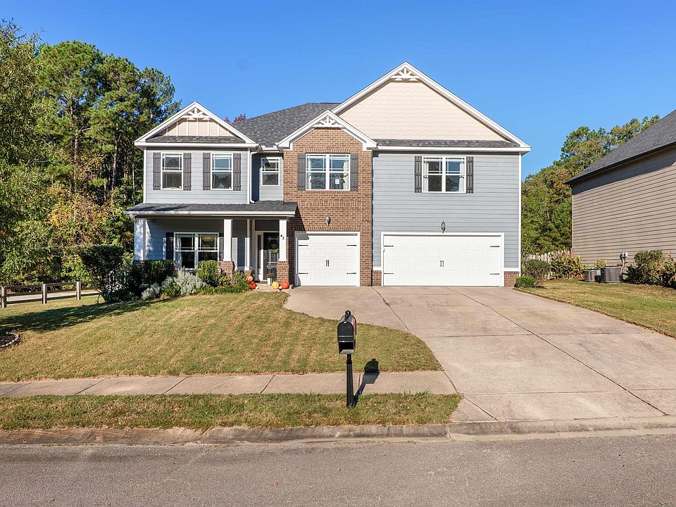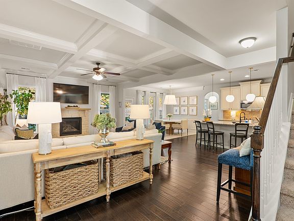 Looking for the perfect place to enjoy life by the lake—without giving up space, style, or convenience? Tucked away at the end of a quiet cul-de-sac in Lake Carolina’s desirable Sandy Glen section, this stunning 5-bedroom, 3.5-bath home checks every box—inside and out. Step inside to discover arched doorways, heavy molding, and coffered ceilings that lend elegance and architectural interest throughout the main floor. Just off the foyer, a flexible space with French doors, custom wallpaper, and a designer chandelier offers the perfect setting for a formal dining room or a stylish home office. The living room wows with a stone fireplace flanked by generous windows, and open flow into the dining area and chef’s kitchen. The kitchen is a showstopper: granite countertops, timeless cabinetry, stylish lighting, gas cooktop, wall oven, huge pantry, and a large island with seating for four. The spacious eat-in dining area connects directly to the oversized backyard patio—partially covered, partially open—making outdoor entertaining, grilling, and letting kids and pets roam a breeze. The first-floor primary suite is a true retreat, featuring a tray ceiling, custom lighting, and a wall of windows overlooking the backyard. The spacious walk-in closet includes custom built-ins, and the spa-like bathroom is outfitted with dual vanities, a soaking tub, and a tiled separate shower. And then there’s the upstairs! Four generously-sized bedrooms are paired into two Jack-and-Jill bathrooms, creating an ideal setup for guests, kids, or multigenerational living. At the center of it all is an enormous second living room—an ideal spot for a media room, playroom, gym, or teen lounge. Storage is no afterthought here, with a walk-in attic and oversized upstairs hall closet offering even more usable space. Need more? Don’t miss the dedicated laundry room, the 3-car garage, the cleverly-organized pantry, and convenient drop zone. Just minutes from the boat ramp, Sunset Park, YMCA, and the community pools, parks, trails, and dog park, this is exactly where you want to be. Schedule your private showing today! Disclaimer: CMLS has not reviewed and, therefore, does not endorse vendors who may